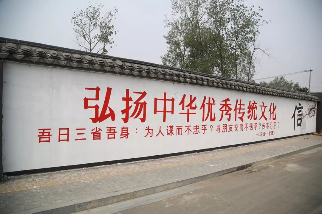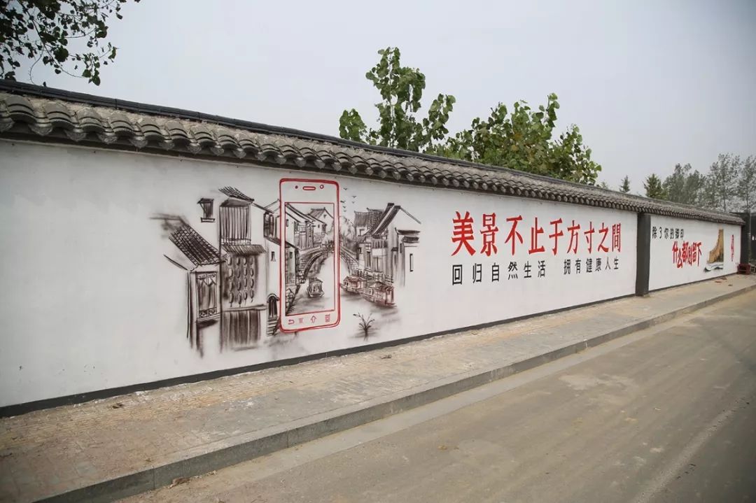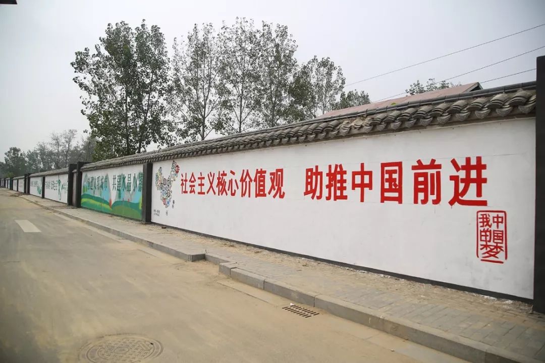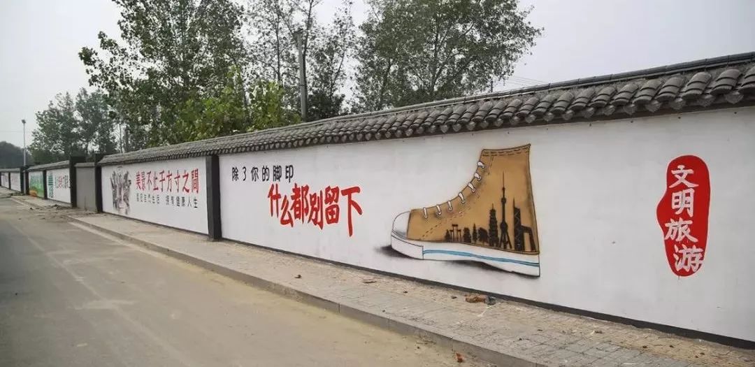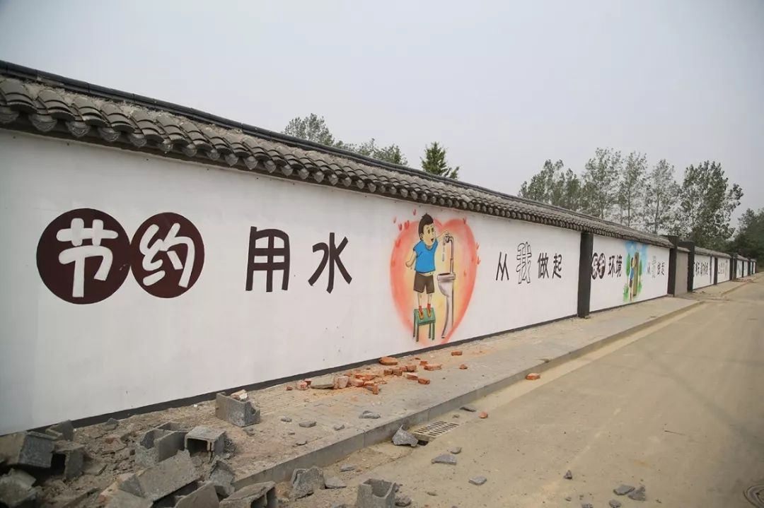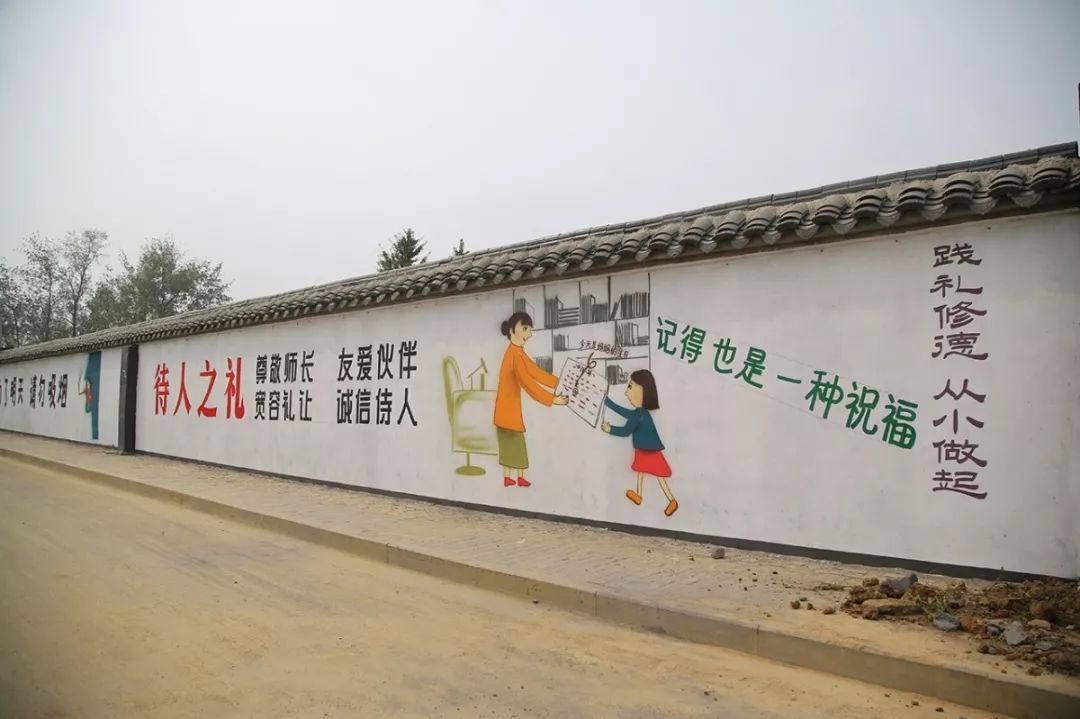 围墙上的图文格外抢眼,以创建文明城市为主线,包涵社会主义核心价值观、中国梦、崇德向善、保护环境资源等“讲文明树新风”公益性广告内容。风格轻快明亮,手绘画工精致,韵味十足,很是温馨。