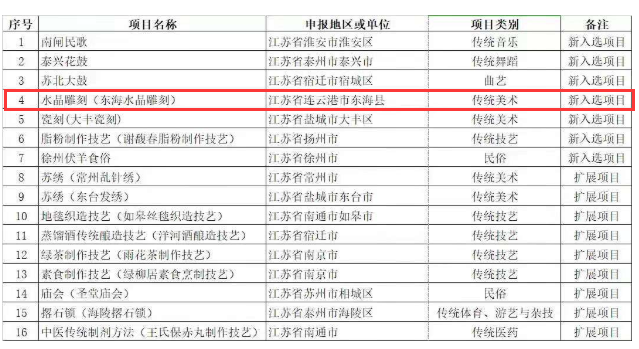 内容简介:好消息!最近文化和旅游部正式公示第五批国家级非物质文化遗产代表性项目名录推荐项目名单来自连云港市东海县的水晶雕刻……