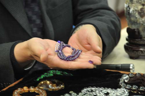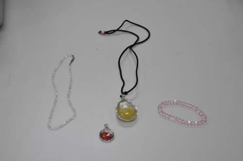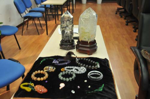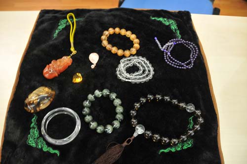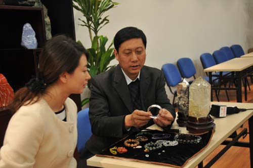李小姐是位水晶爱好者,收藏水晶饰品已经有一段时间了,可是她一直有些困惑,不知道自己买的这些水晶饰品到底是真是假?佩戴水晶到底有没有神奇的魔力?今天,她带着4件水晶饰品来到国家珠宝玉石质量监督检验中心,希望专业的检测人员为她检测一下,自己买的这些水晶饰品到底是真是假。国家珠宝玉石质量监督检验中心培训部主任杨立信对她的产品进行了仔细的检测。