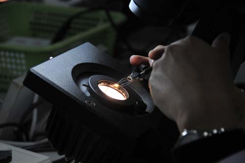 杨立信在进行水晶检测