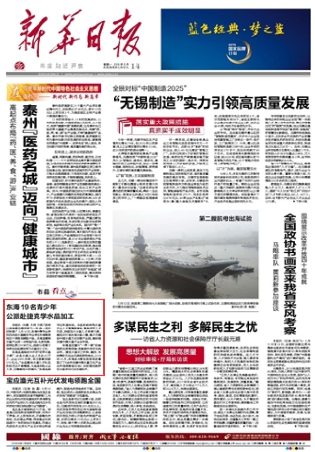 “政府让我免费去捷克学习一年,我一定好好珍惜!” 5月10日,东海中等专业学校四年级水晶雕刻专业学生孙海青得知这个消息后满脸兴奋。东海县着眼水晶产业进一步转型升级、优质发展,政府出资200余万元,选拔19名青少年学生远赴捷克学习水晶加工工艺。