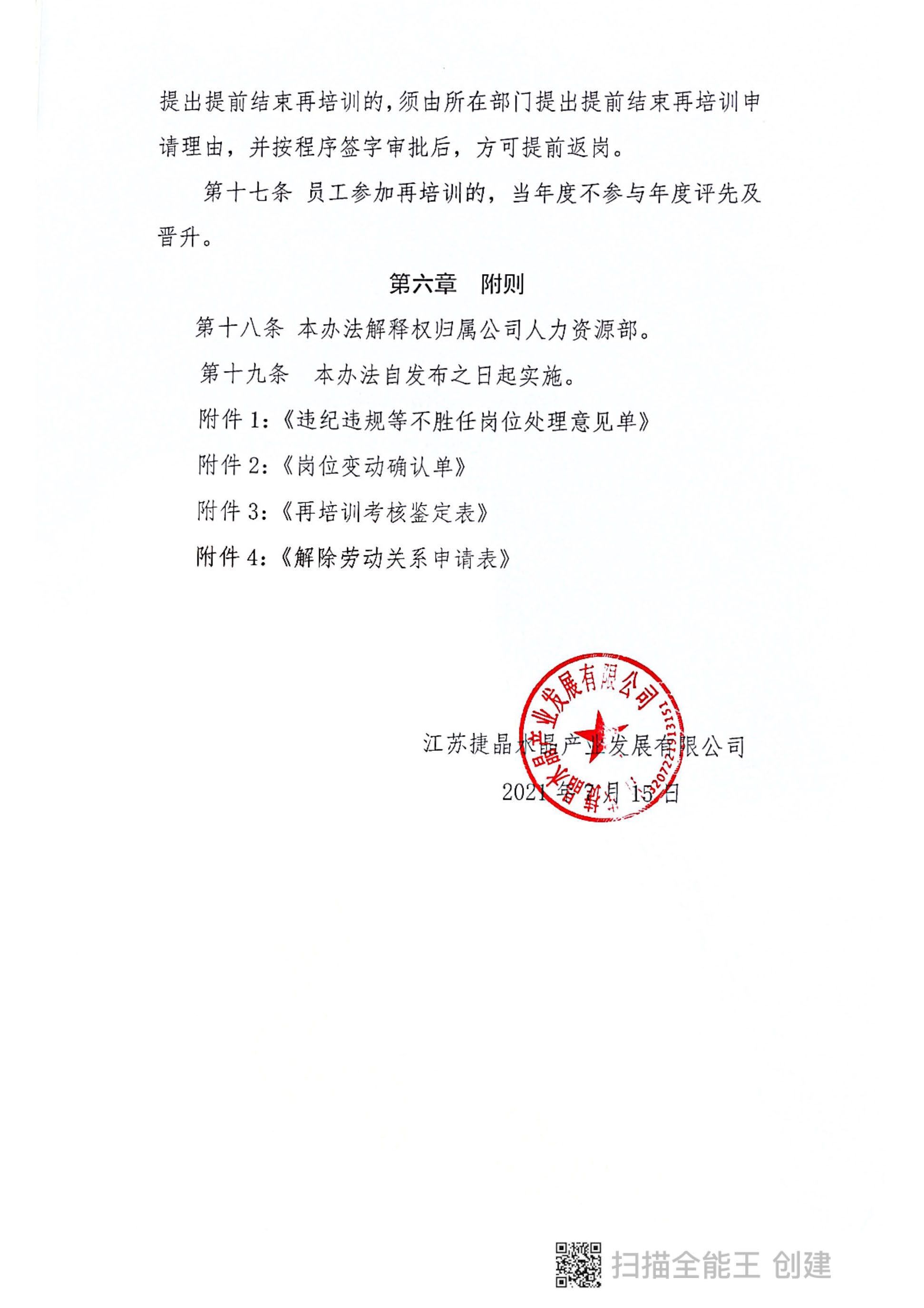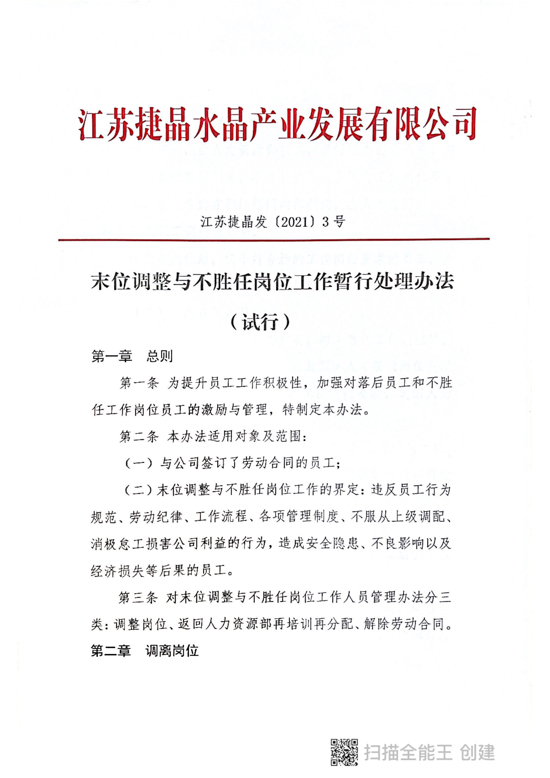 江苏捷晶水晶产业发展有限公司末位调整与不胜任岗位工作暂行处理办法(试行)