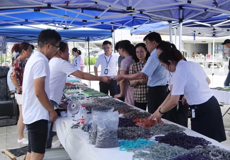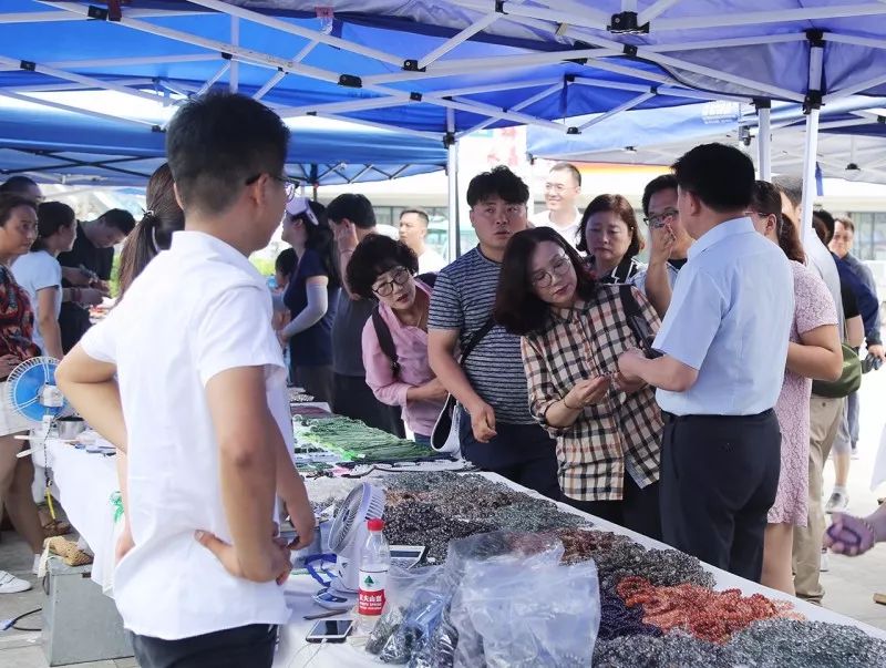 正值盛夏,烈日炎炎。农历四九是逢大集的日子,淘晶广场人头攒动、热闹非凡。考察团一行首先来到淘晶广场,边走边欣赏、边看边了解,不时停下脚步,拿起精致、漂亮的水晶饰品与商户交谈,仔细询问水晶产品价格、材质等情况。丛丛晶簇、晶莹剔透、匠心独创,令考察团印象深刻,赞叹不已。