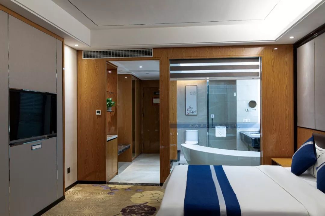 遇见是一种神奇的体验,38平米超大空间,房间配有帝王龙头、浴缸、智能马桶、羊毛地毯,全天然大理石材装修,EO级家具,五星级床品等设施。