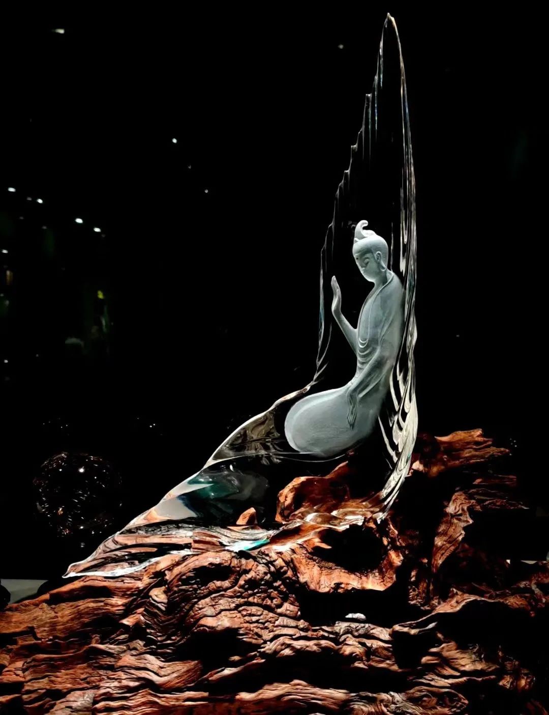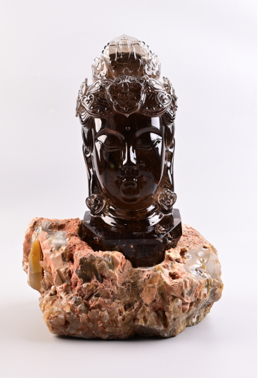 由天然茶体金发晶雕刻而成,作品中融入了扬州山子雕的工艺手法,将茶水晶古香古色的韵味展现得淋漓尽致。仿佛敦煌古韵晶呈,梦里盛世重回。那份怅然而唯美的意境,在时光的浸淫中演化,历经千万年,为信仰勾勒着人们心中的祥和,创作者用自己精湛的手艺描绘着心中的想象。