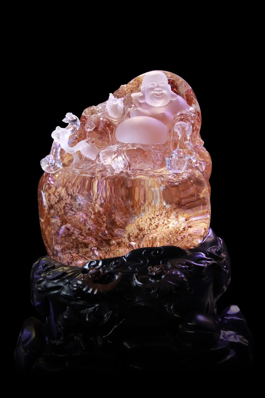 由天然水晶雕刻而成,水晶位列佛教七宝,具备非常浓厚的佛家气息与历史文化积淀,用水晶雕刻大肚佛自有三分禅意萦绕之意。大肚佛喻意示人:大肚能容,容天下难容之事;笑口常开,笑天下可笑之人。寄意诸位人生也可以如此豁达开朗。
