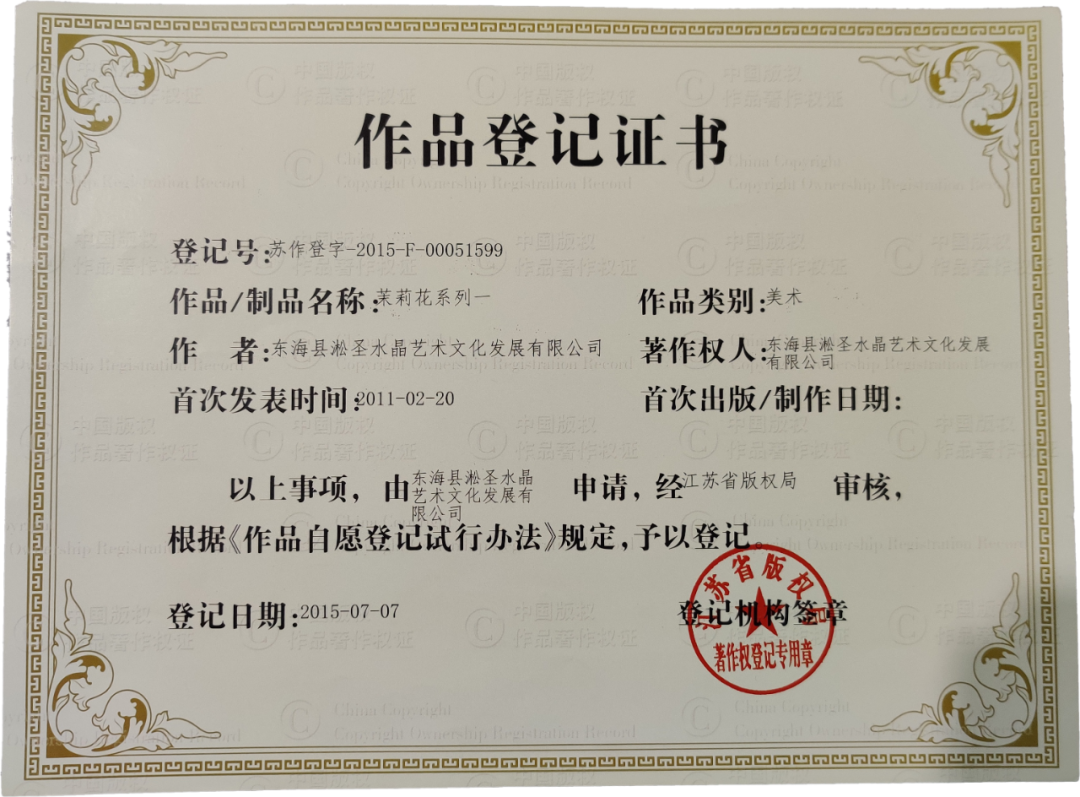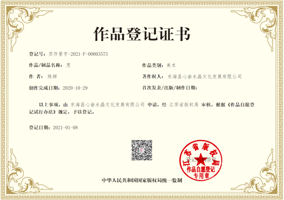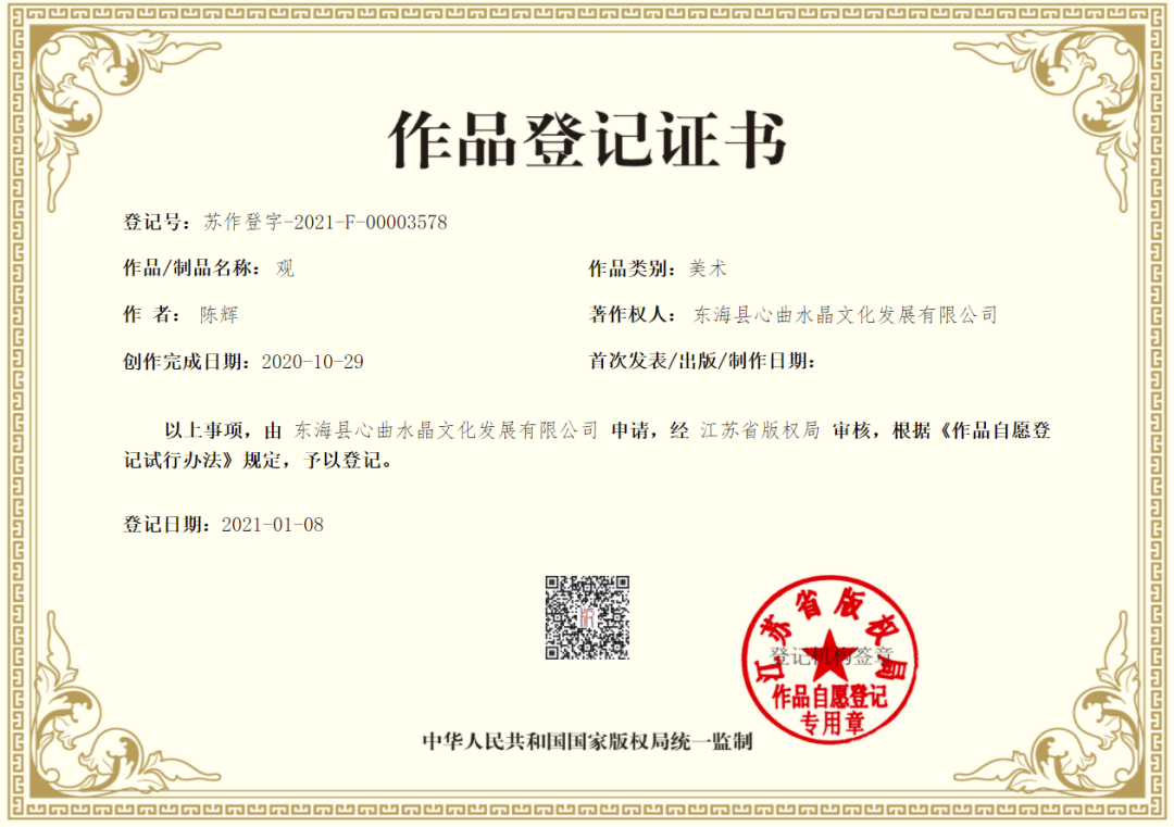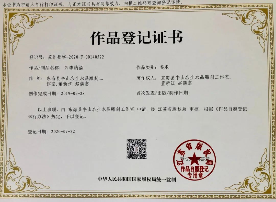 习近平总书记在党的十九大报告中指出,要“倡导创新文化,强化知识产权创造、保护、运用”。近年来,我县水晶企业高度重视创新工作,在产品研发上投入了大量的人力、物力和财力,生产的水晶工艺品更加符合大众审美和市场需求,消费者对于水晶文化的认同感达到了前所未有的高度。“十三五”期间,累计水晶版权登记量达2.6万件,其中2020年水晶版权登记量9400件,同比2016年增长了9.4倍,占全市版权登记总量的三分之一,水晶工艺品的附加值和经济贡献率显著提升。水晶版权已成为塑造企业品牌、推动水晶文化产业高质量发展的重要支撑。