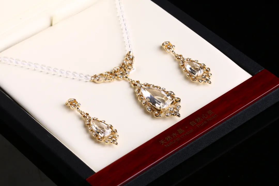 纯天然白水晶挂坠,由18K红铜镀金镶嵌而成。以茉莉花为灵感,精选天然纯净体白水晶,采用精湛的刻面工艺切割,镀金镶嵌,依据春夏秋冬四个季节设计出四个系列冰清玉洁、清雅脱俗的首饰。茉莉花是江苏的“省花”,体现了江苏人文精神,芳香纯正、清雅而幽远,符合江苏儿女不张扬、朴实无华而又进取向上、自强不息的精神操守。