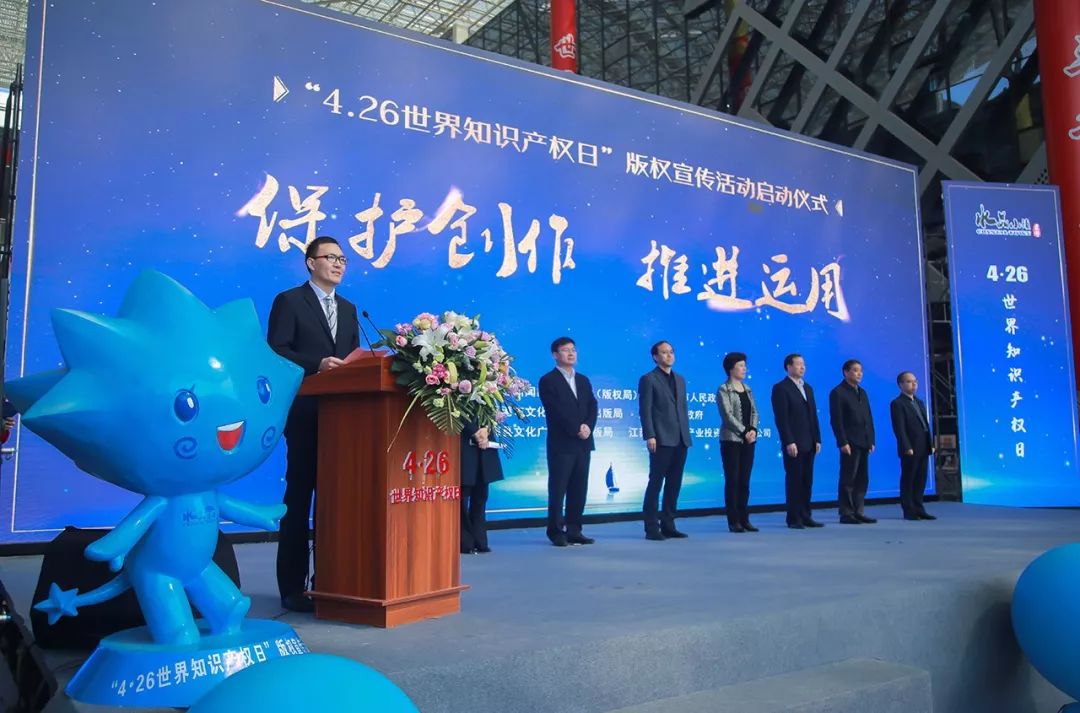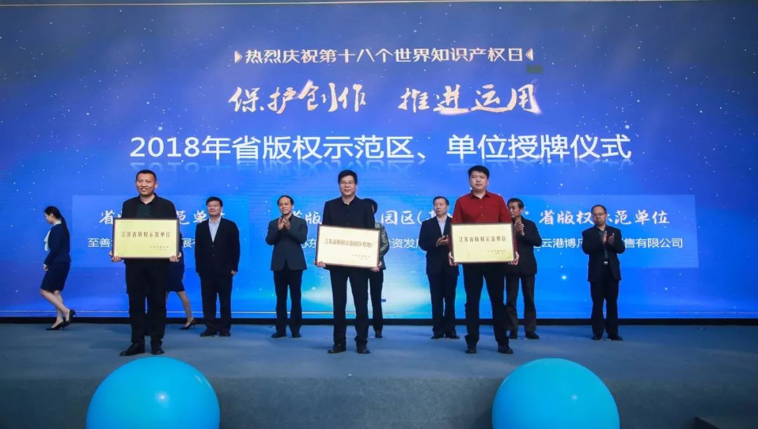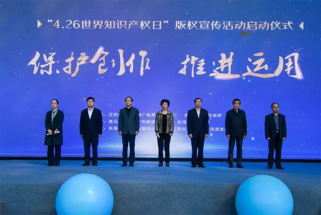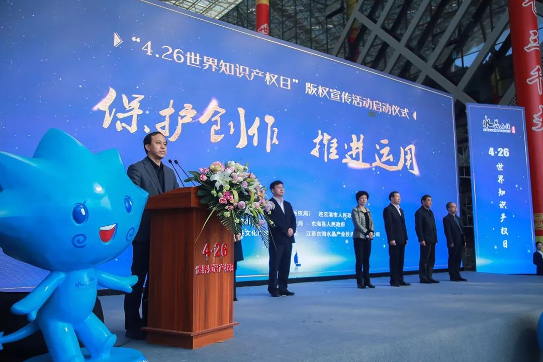4月25日,江苏省2018年“4•26世界知识产权日”版权宣传活动启动仪式在东海水晶小镇举行,省新闻出版广电局(版权局)局长缪志红、副局长于国民、副市长黄远征、县委书记朱国兵、副县长李宝芹参加活动。缪志红、黄远征分别为活动致辞,并为中国东海水晶城知识产权保护联盟揭牌。