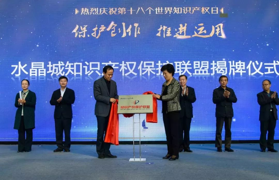 缪志红、黄远征为中国东海水晶城知识产权保护联盟揭牌