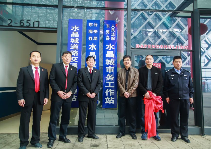 为及时妥善处理矛盾纠纷,畅通纠纷解决渠道,东海县法院结合实际,根据工作需要,在中国东海水晶城设立审务工作站。